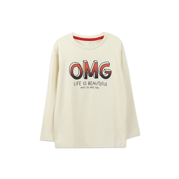 Легкий трикотажный лонгслив предназначен для детей дошкольного возраста и школьного возраста. Изделие пошито их натурального хлопка, материал приятно прилегает к телу и дарит комфорт в носке. Небольшая добавка эластана повышает упругость ткани. Свободный крой лонгслива не сковывает движения, а длинные рукава бережно защитят руки от холодного воздуха. Вырез горловины круглый, обработан бейкой в тон к цвету кофты. Перед лонгслива дополнен контрастным красным принтом с надписью «Омг, жизнь прекрасна».