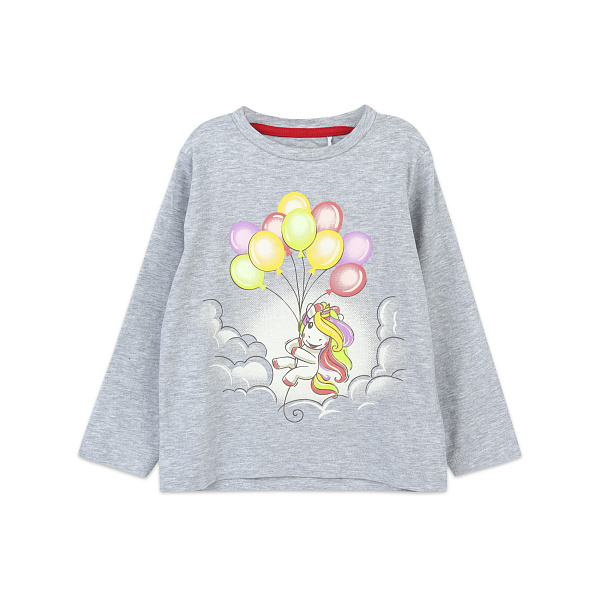 Лонгслив Lanson Kids принт Единорог с шариками серый