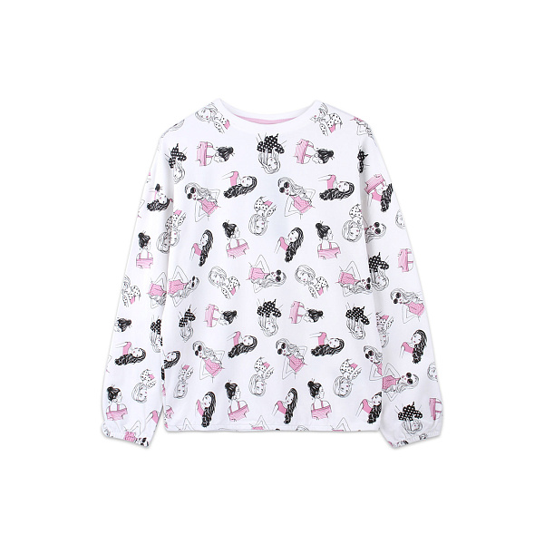 Хлопковый лонгслив для девочек на каждый день. Выполнена в белом цвете с ярким принтом в виде изображений девушек в розовых и черных тонах. Будет хорошо смотреться с джинсами или юбками подходящего оттенка.Лонгслив — это базовый элемент гардероба. Благодаря достаточно свободному крою ребенку будет в ней удобно и комфортно. Кофта никак не стесняет и не ограничивает движения.