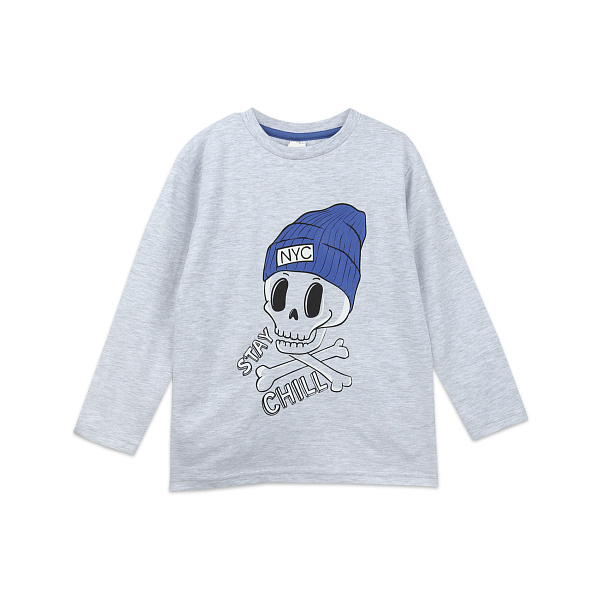 В гардеробе будущего ребенка обязательно должна быть одежда как классического стиля, так и спортивного типа. И если классика обладает строгими линиями, сковывающими движения, то спортивная одежда является обязательным атрибутом, ведь главные ее черты – комфортность, свобода движений и простота оформления. Лонгслив свободного кроя, предрасполагающего комфортное использование придется ребенку по душе. На светло-сером фоне привлекающей деталью будет красочный принт черепка, который понравится вашему ребенку. Изделие не растягивается, так как выполнено из натурального хлопка, и не теряет первозданные цветовые характеристики.