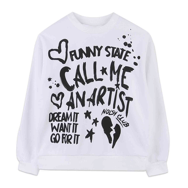 Модель представлена в белом цвете с яркими черными надписями и рисунками, что добавляет изделию стиль и индивидуальность. Этот дизайн отлично подойдет юным модницам, предпочитающим выразительный и уникальный стиль.