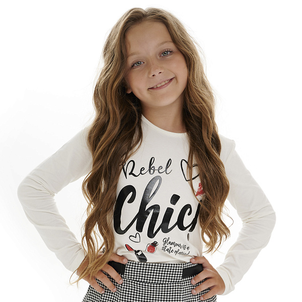 Лонгслив с длинным рукавом для девочек имеет классический свободный крой. Это отличный вариант повседневной одежды в прохладную погоду. Кофта выполнена в нейтральном молочном цвете, который будет хорошо сочетаться с разными оттенками и стилями одежды. Носить можно и с джинсами, и с юбками. На груди изображен яркий рисунок.