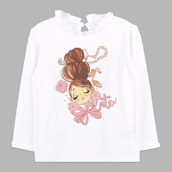 Лонгслив Lanson Kids с оборкой-стойкой по горловине и молодежным принтом белый