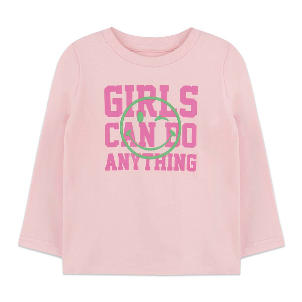 Лонгслив Lanson Kids с надписью и улыбающимся смайликом в нежном розовом цвете