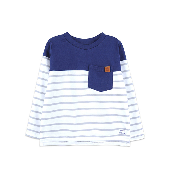 Лонгслив Lanson Kids в полоску с карманом бело-синий