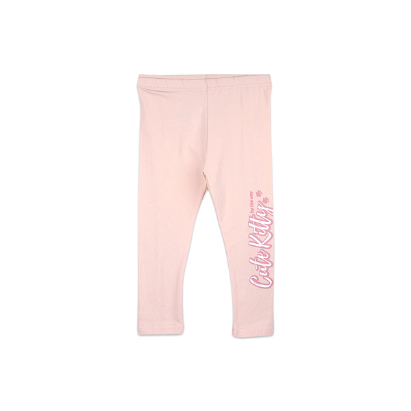 Хлопковые лосины для девочек из ткани персикового цвета с принтом в виде надписи на одной из штанин. Это повседневные брюки, изготовленные из натуральной, дышащей и приятной к телу ткани. Их можно надеть на прогулку на детской площадке или использовать как домашние штаны. Девочке будет удобно играть, бегать и общаться с другими детьми.