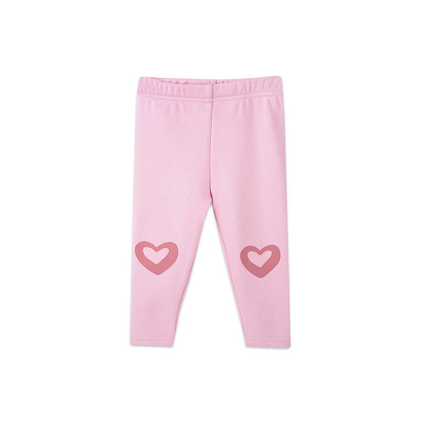 Рейтузы удерживаются на резинке, не сдавливающей живот и талию, но достаточно прочной. Цвет изделия - розовый, колени украшены изображениями больших сердечек красного цвета.