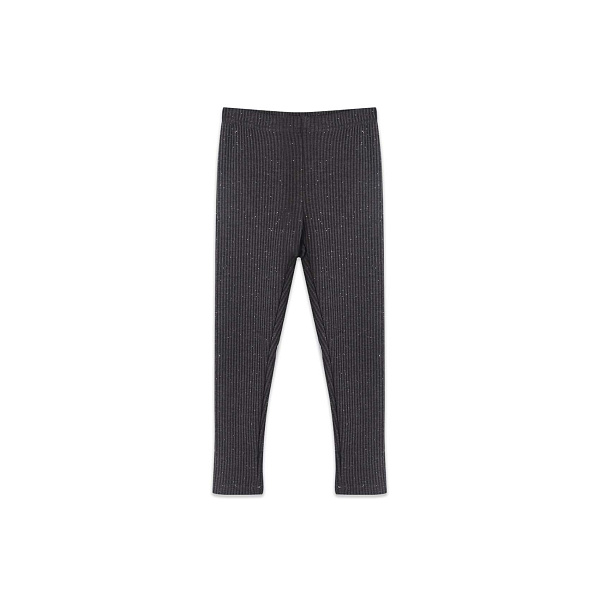 Теплые рейтузы для девочек серого цвета. Штаны изготовлены синтетического материала с добавлением вискозы. Модель простая, но с изюминкой. Ткань в рубчик темного оттенка, украшенная небольшими блестками, выглядит необычно и привлекает внимание. Штаны достаточно плотные. Они прекрасно подойдут для прогулок в прохладную погоду. Их можно надевать для тепла под юбку или дополнительным слоем под штаны. Малышка сможет носить рейтузы и как самостоятельную вещь, дополнив образ кофтой или футболкой.