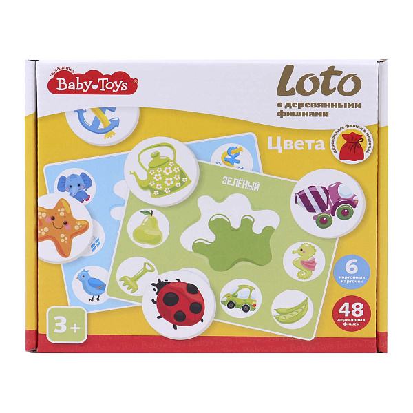 Лото с деревянными фишками «Цвета» представляет собой увлекательную игру для детей от трех лет. Набор включает в себя 6 красочных картонных карточек и 48 деревянных фишек, упакованных в удобный тканевый мешочек. На карточках изображено 8 картинок, соответствующих определенному цвету.