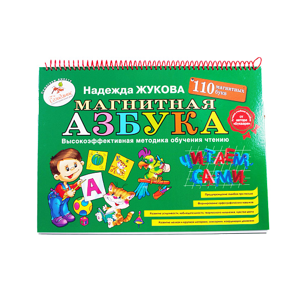 Магнитная азбука предназначена для детей старше 3 лет. Это высокоэффективная методика обучения чтению Надежды Жуковой. Подобное приспособление помогает ребенку активировать орфографические навыки, предупреждать ошибки в письме. При этом у него формируется усидчивость, наблюдательность, творческое мышление, а также восприятие цвета. Развивается также моторика рук, сенсорика, координация движений. Комплект содержит 110 магнитных букв, с помощью которых ребенок сможет самостоятельно складывать слова, магнитную доску, а также методические указания для работы с азбукой. Выполнена в виде настольного перекидного календаря на пружине. Ее можно легко установить на парте или на столе.