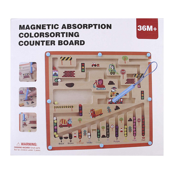В комплект включены магнитная палочка и шарики различных цветов, которые необходимо перемещать по лабиринту, соответствуя дорожным знакам и направлениям. Игра помогает в изучении базовых правил дорожного движения, развивает моторику и координацию движений.