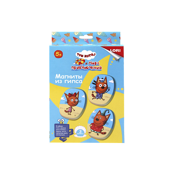 Магниты из гипса «Котята на пляже» ребенок будет рад изготовить самостоятельно или вместе с родителями, используя входящие в комплект материалы. Яркие сувениры с популярными мультипликационными героями Коржиком, Компотом и Карамелькой можно прикрепить на дверцу холодильника дома или подарить школьным друзьям и родственникам. Игры с гипсом и красками развивают творческие и художественные способности, а также помогают ребенку научиться быть усидчивым, аккуратным и внимательным к деталям. На каждый этап имеется пошаговая инструкция.