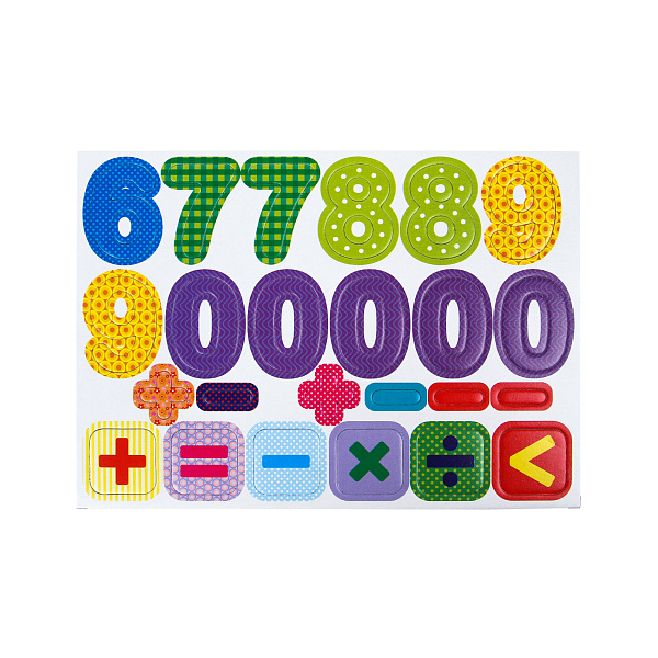 Набор из 45 деталей ориентирован на мальчиков и девочек с трехлетнего возраста, предназначен для домашних занятий. В него входят математические знаки и цифры, изготовленные из винила с магнитными свойствами. Все детали обладают округлой формой, лишены острых граней и выступающих краев. Внимание дошкольников помогут удержать яркие цвета и оригинальное оформление. Для импровизированных уроков можно применить специальную доску или стенку холодильника. В игровой форме дети быстро освоят навыки простого счёта и базовые арифметические операции. Для малышей младше 3 лет необходим контроль со стороны взрослых.