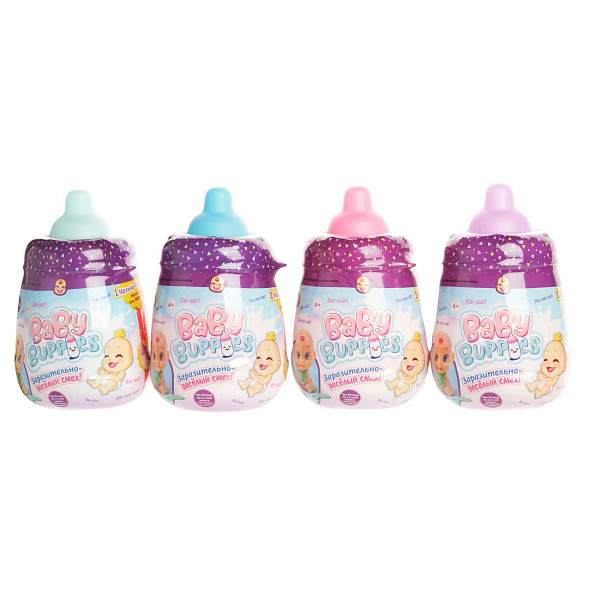 Интерактивные малыши Baby Buppies – это пупсики-сюрпризы, спрятанные внутри бутылочки. Они умеют заразительно хохотать, плакать, хныкать, пить из бутылочки, издавая при этом довольные звуки. Малыша можно укачать, а если вы не будете уделять ему время дольше 2-х минут – он потребует вашего внимания с помощью плача! Все как у настоящих младенцев! По цвету подгузника вы поймете пол малыша, а на его бутылочке, входящей в комплект, от попадания солнечных лучей проявится первая буква имени малыша, на которую ребенок должен выбрать ему имя. Также в комплект входят слюнявчик, соска и погремушка. Полная коллекция Baby Buppies включает в себя 20 разных малышей, а какой попадется именно вам – сюрприз!