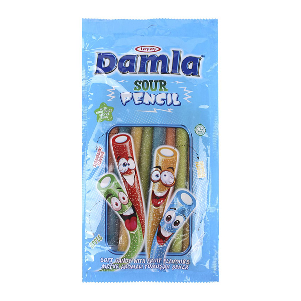 Мармелад Damla «Кислые карандаши» — яркое лакомство для любителей кислых сладостей. Упаковка весом 75 грамм содержит мягкие разноцветные мармеладные палочки, оформленные в виде оригинальных карандашей. Лакомство имеет насыщенный фруктовый вкусом и покрыто кислой посыпкой. Продукт подходит для небольших перекусов или угощения на детских праздниках.
