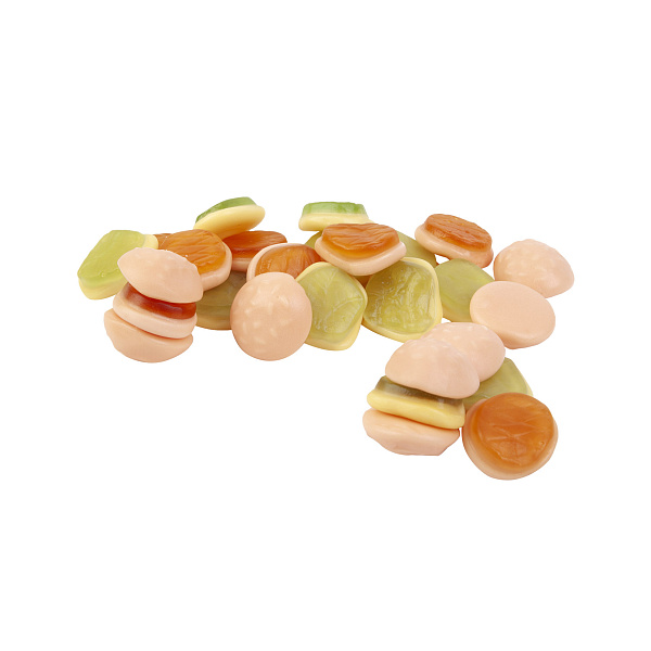 Ваш ребенок любит фастфуд и сладкое, но не может определиться с выбором. Жевательный мармелад «Фру-Фру» в виде бургеров решат обе проблемы разом. Ребенок точно увлечется таким занятием — ведь «приготовить» его нужно самостоятельно! А все нужные компоненты уже в красочном пакете — две половинки хрустящей булочки, салатный лист и сочная котлета.