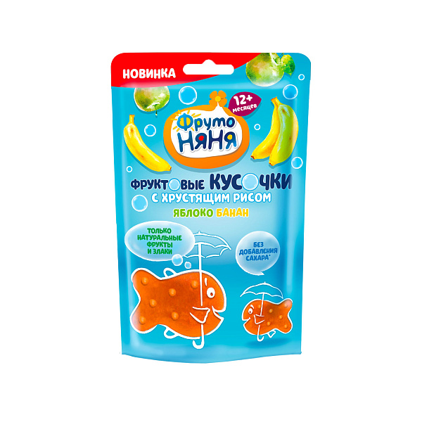 Мармелад ФрутоНяня фруктовые кусочки с хрустящим рисом яблоко-банан 12г