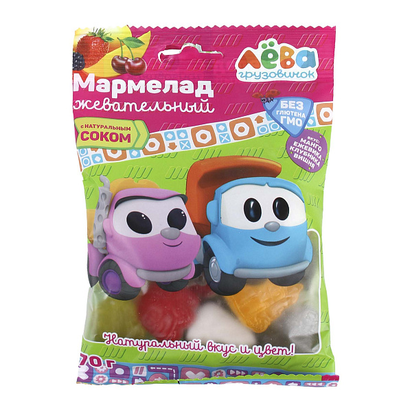 Мармелад жевательный «Грузовичок Лева» — это яркие фигурки из натурального сока с ароматом манго, ежевики, клубники и вишни. Красочная упаковка с изображением любимых персонажей привлекает внимание и поднимает настроение. В составе отсутствуют ГМО, глютен и искусственные красители. Натуральный сок дарит настоящую фруктовую палитру вкусов с каждой долькой. Отличный выбор для маленьких гурманов, которым важно качество и удовольствие от лакомства.
