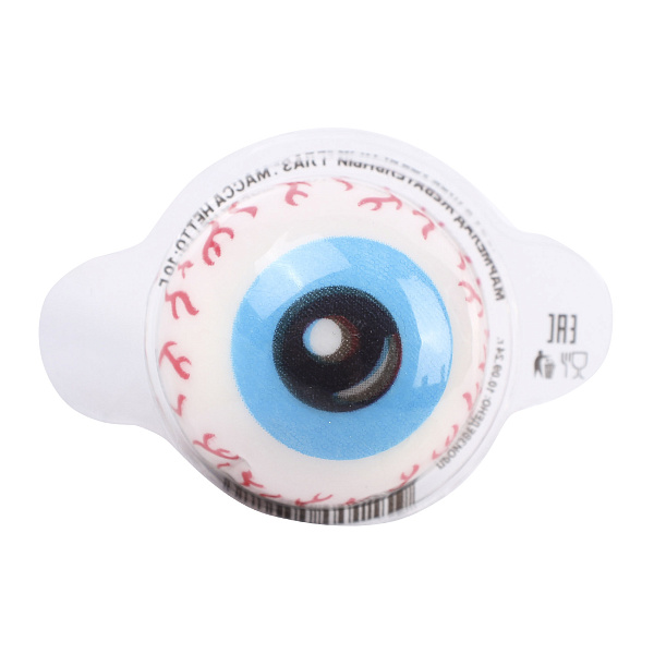Мармелад «Лолило» с джемом весом 10 грамм отличается необычным и ярким дизайном. Форма выполнена в виде глаза с детализированной окраской, которая привлекает внимание и добавляет элемент неожиданности.