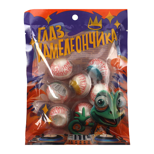 Мармелад «Глаз хамелеоничика» с джемом — оригинальное лакомство для любителей сладостей. В упаковке 7 мармеладок, которые привлекают внимание своим необычным внешним видом. Внутри каждой конфеты находится вкусный джем. Удобная упаковка позволяет взять сладость с собой в дорогу или на прогулку.
