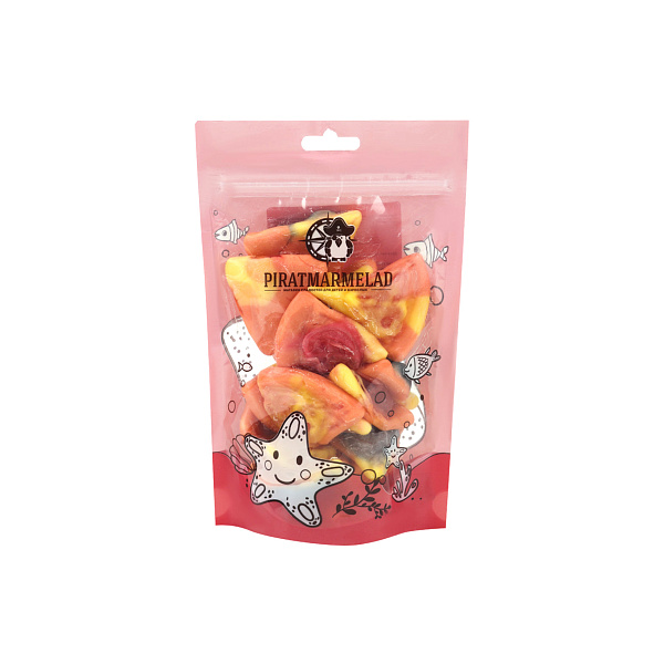 Интересный десерт PIRATMARMELAD изготавливают из концентрированных фруктовых, овощных соков. В них добавляют сахарный и глюкозный сиропы, желирующие агенты, красители, ароматные специи, пряности, другие ингредиенты. Внешне каждый кусочек лакомства напоминает знаменитую итальянскую пиццу, потому мармелад и получил такое название. Продукт насыщен полезными углеводами. Он на 78% состоит из них. Лакомство быстро усваивается организмом, приносит чувство сытости.