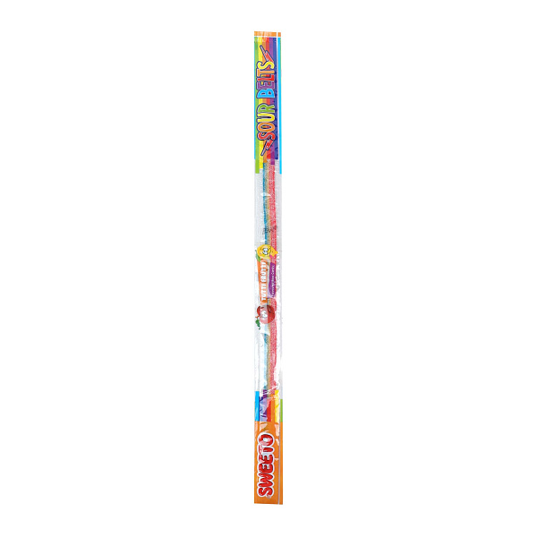Жевательный мармелад SWEETO выполнен в форме тонких ремешков. Продукт имеет вкус фруктового микса. Мармелад отличается выраженным кислым вкусом. Он сочетается со сладкой основой. Состав продукта включает натуральные компоненты. Текстура лакомства плотная и упругая. Небольшая упаковка удобна для одного перекуса. Форма ремешков делает процесс еды интересным.