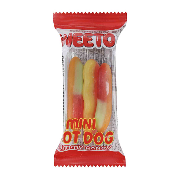 Мармелад «Sweeto» жевательный — это сладкая конфета в форме миниатюрных сосисок с яркой трёхцветной окраской. Продукт имеет мягкую, эластичную текстуру и фруктовый вкус, что делает его привлекательным для детей, ценящих необычные формы и игры с едой.