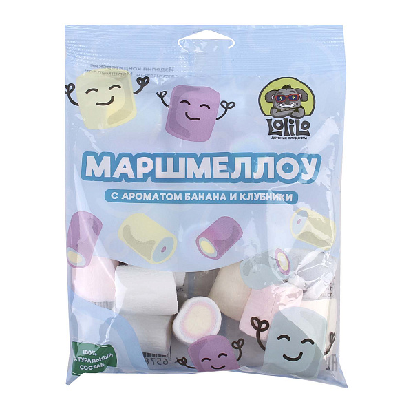 Маршмеллоу «Лолило» с ароматом банана и клубники предлагает нежное и сладкое угощение весом 70 г. Упаковка оформлена в ярких и привлекательных тонах, подчеркивая радость и веселье, которые подарит продукт.