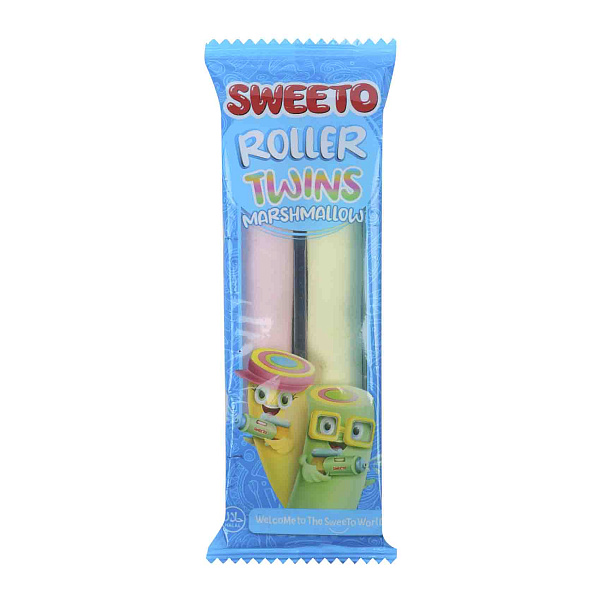Маршмеллоу SWEETO Двойной ролик представляет собой два цилиндрических кусочка зефира разного цвета. Лакомство подходит для перекуса. Оно понравится и детям, и взрослым. Масса нетто: 23 грамма.