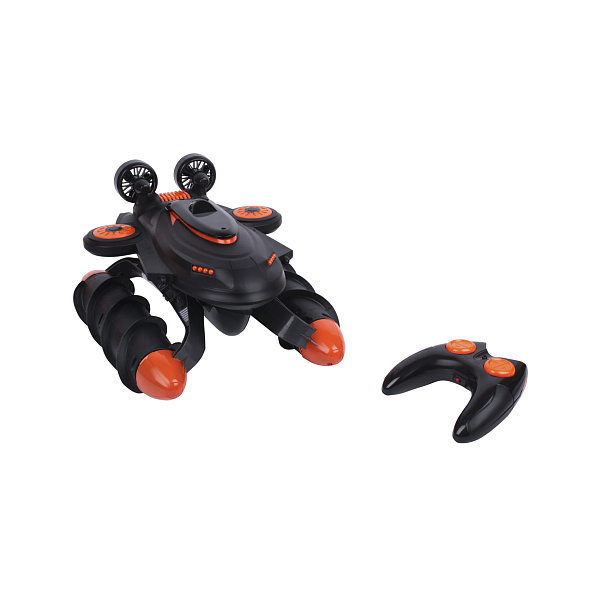 Радиоуправляемая машинка-амфибия вызовет восхищение у маленького любителя технических игрушек. У нее необычный дизайн, в котором соединены элементы корабля, самолета и автомобиля, а также имеются звуковые и световые эффекты. Эта игрушка приспособлена как для езды по твердой поверхности и по снегу, так и для плавания по водной поверхности. Ее можно запускать дома в ванной или на улице в небольшом водоеме. Игрушка управляется с пульта. Работает она от аккумулятора, зарядное устройство прилагается в комплекте. Батарейки к пульту приобретаются отдельно.