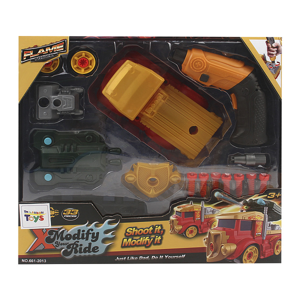 Сборная машинка 3 в 1 — это яркая и стильная игрушка в красно-желтых тонах с эффектным огненным декором, которая легко превращается в три разных модели. В наборе есть все необходимое: колеса, корпус, винтики и даже маленький шуруповерт, с помощью которого ребенок сможет самостоятельно собирать и менять конструкцию, создавая собственный уникальный дизайн.