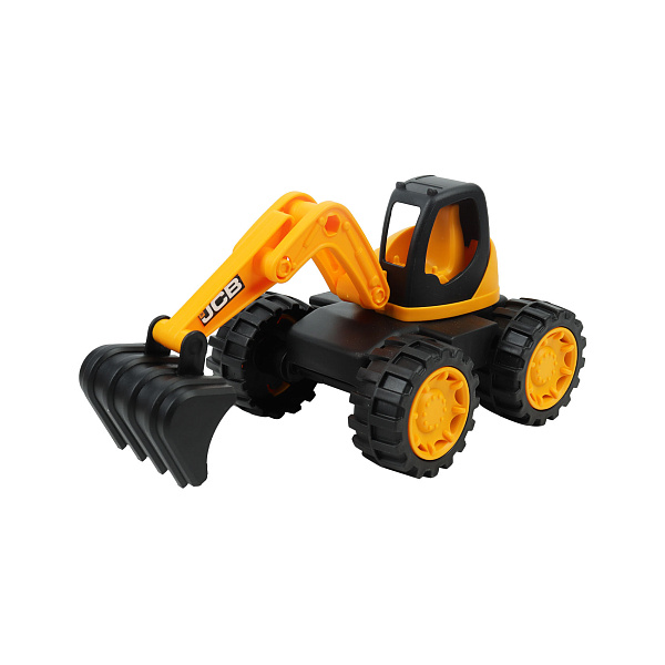 Яркий экскаватор порадует маленьких поклонников строительной и автомобильной техники. Малыши старше 3 лет научатся управлять этим профессиональным транспортом. Модель является миниатюрной копией техники JCB в масштабе 1:32. Колеса экскаватора выполнены из прорезиненного материала, который способствует сцеплению с дорогой. Машина не скользит по поверхности и не царапает ее.