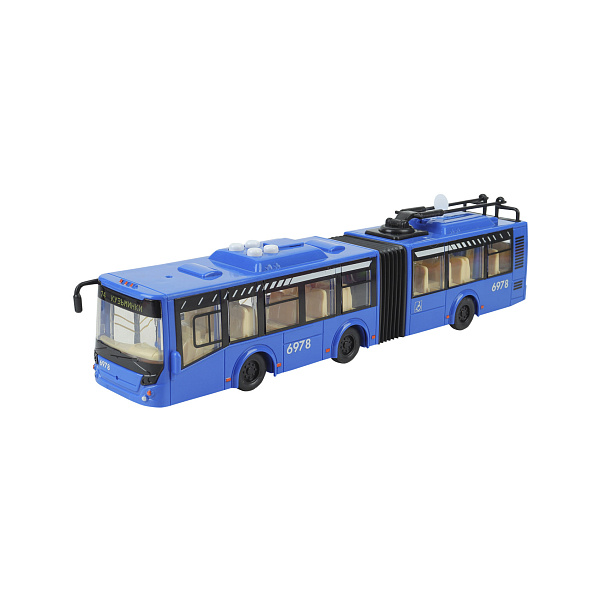 Инерционная машинка «Троллейбус» со световыми и звуковыми эффектами понравится любому ребенку. Тщательно проработанный дизайн делает эту модель очень похожей на настоящий длинный троллейбус с гармошкой. Внутри выполнена имитация пассажирского салона с креслами. У игрушки открываются и закрываются дверцы из прозрачного пластика, а также поднимается и опускается токоприемник.