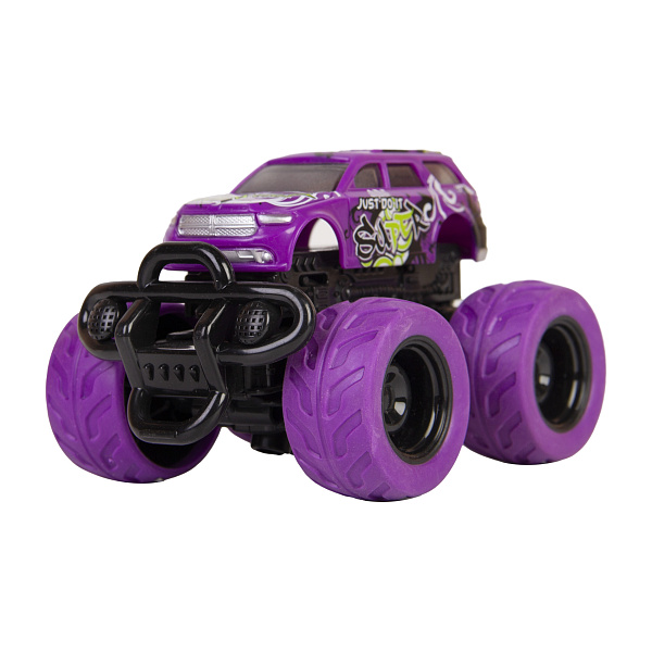 Массивная инерционная машина Big Foot станет великим покорителем дорог вместе с ребенком. Яркий фиолетовый цвет и такого же оттенка мощные колеса — равным машине нет никого.