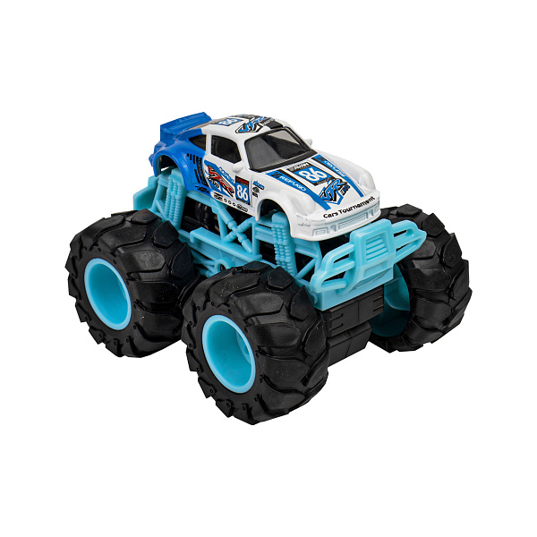 Оригинальный автомобиль для движения по пересеченной местности не оставит равнодушным ни одного юного любителя техники. Большие колеса снабжены инерционным двигателем, придающим автомобилю высокую динамичность, а фактурный протектор позволит преодолевать сложные виды препятствий во время движения. Корпус автомобиля изготовлен из прочного металлического сплава, стальные несущие элементы конструкции и пластиковая ударопрочная отделка делают автомобиль практичным в использовании. Оригинальный внешний вид и высокая функциональность автомобиля сделают его чудесным подарком для малыша. Игрушка подходит для детей старше 3 лет.