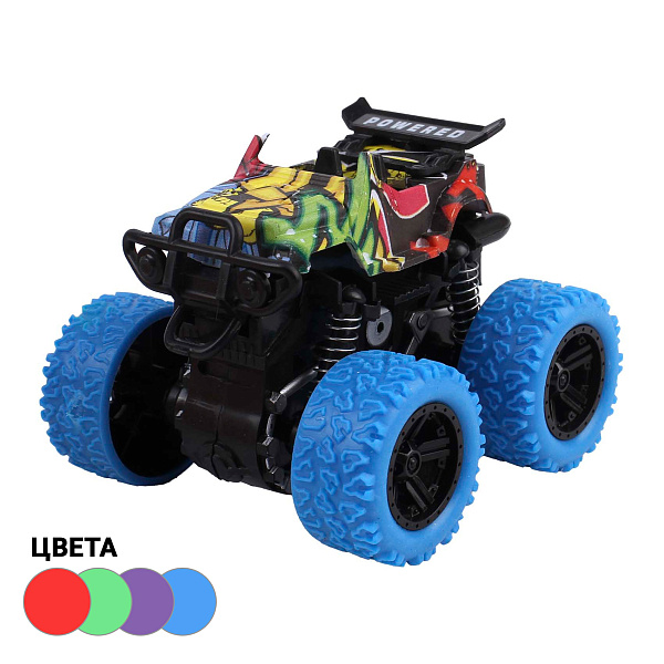 Трюковая машинка с большими колесами — это яркая и маневренная игрушка, которой по плечу любые приключения. Размер машинки: 8,5х9х8 см. Компактные габариты позволяют легко брать ее с собой и устраивать мини-гонки, где угодно.
