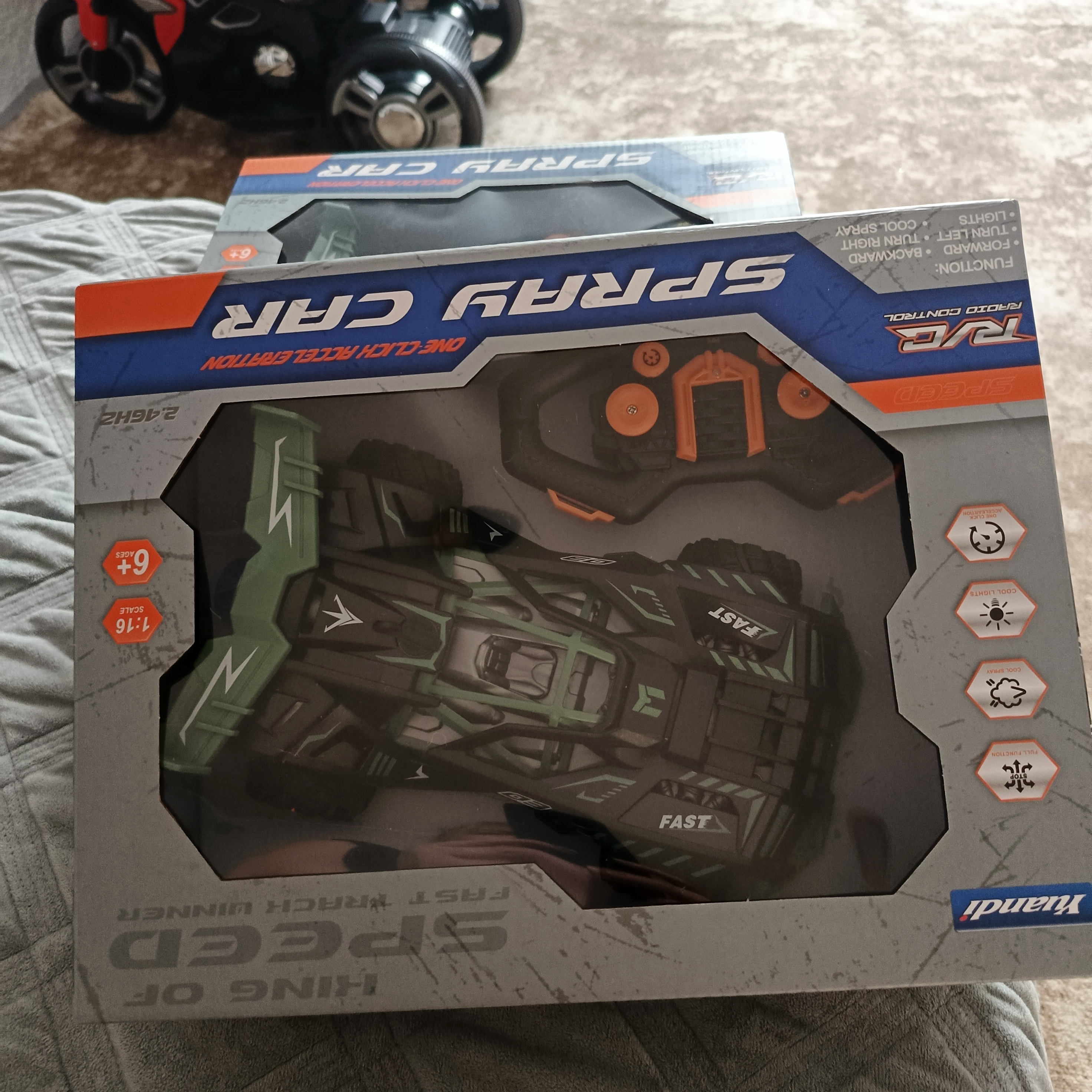 Машинка гоночная Spray Car р/у световые эффекты с дымом 1:16 зеленая