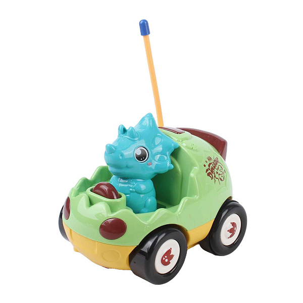 Машинка Дино на радиоуправлении — это яркая и увлекательная игрушка для детей старше 18 месяцев. Динозаврик в машине зарычит, если нажать на него.