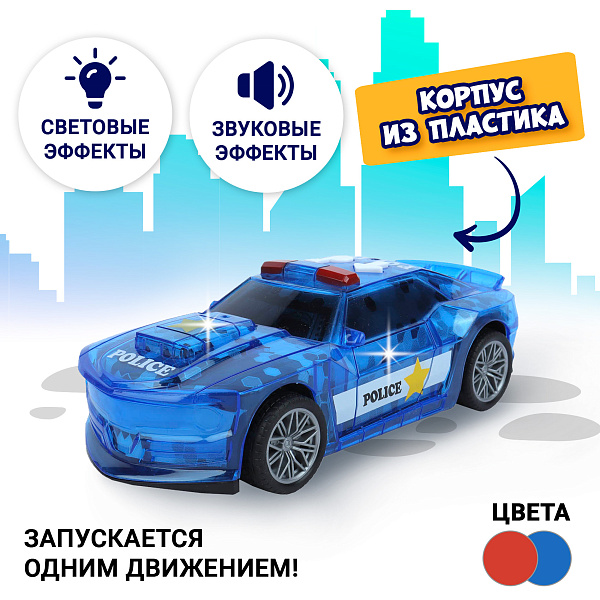 Моторизованная полицейская машинка станет полезным пополнением игровой коллекции любого ребенка старше 3 лет. Автомобиль отличается современными очертаниями кузова, внешне напоминает спорткар. В любую минуту он готов начать погоню, которая будет сопровождаться звуком сирены и мерцанием проблесковых маячков. Это вызовет искренний восторг у ребенка, станет источником вдохновения и позитивных эмоций.