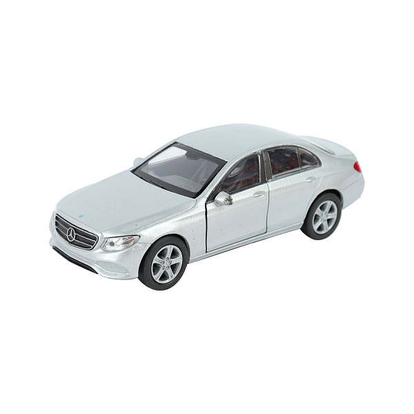 Игрушечная машинка Welly Mercedes e-class, выполненная в размере 1:38. Металлический корпус с декоративными пластиковыми элементами, визуально повторяет реальный автомобиль. Благодаря инерционному механизму машины способна разгонятся и быстро ехать вперед. У игрушки есть миниатюрные фары, зеркала заднего вида и даже эмблема Мерседеса на решетке. Передние две открываются, позволяя посадить кого-то за руль или просто внимательно осмотреть салон.