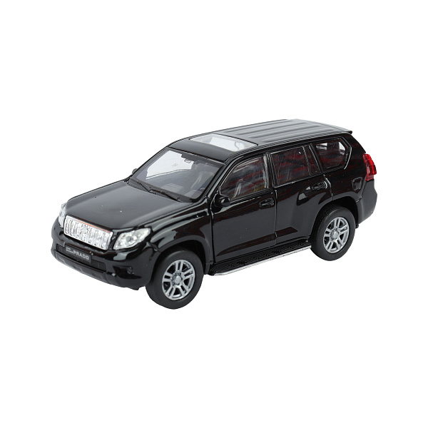 Миниатюрная металлическая машинка TOYOTA PRADO. Изготовлена в размере 1:38 от реального автомобиля. Благодаря инерционному механизму она способна быстро разгоняться и ехать в указанном направлении. Игрушка хорошо детализирована, есть много мелких деталей, включая эмблему «Тойоты», реалистичные фары и открывающиеся передние двери. Корпус выполнен из металла, а остальные элементы из пластика.
