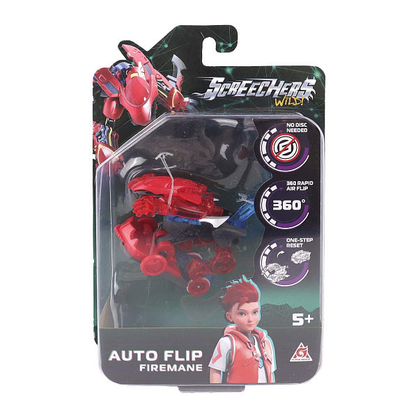 Машинка-трансформер "Дикие Скричеры: Автофлип Фаермэйн" выполнена в ярко-красных и синих тонах, что придает ей динамичный и современный вид. Она способна мгновенно превращаться из машинки в мощного зверя благодаря продуманной системе трансформации.