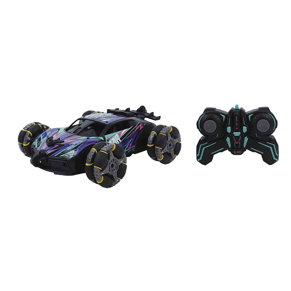 Управление осуществляется с помощью беспроводного пульта, работающего на частоте 2.4 ГГц. Пульт оснащен двумя аналоговыми джойстиками, кнопками управления светом, звуковыми эффектами и автоматической демонстрацией трюков. На корпусе машинки предусмотрены светодиодные огни, активируемые с пульта.
