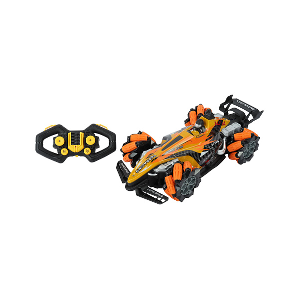 Машинка быстро развивает скорость, легко входит в повороты, может дрифтовать на ровных поверхностях. Управляется с помощью небольшого пульта, работающего от двух батареек типа АА (в комплект не входят).