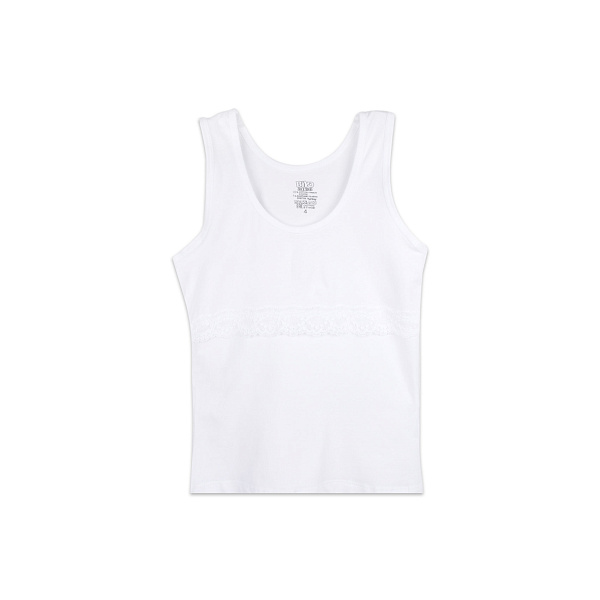 Классическая белая майка является обязательным элементом сезонного гардероба девочки дошкольного возраста. Модель имеет широкие лямки, которые не сползают с плеч. Аккуратные соединительные швы не раздражают и не натирают детскую кожу.