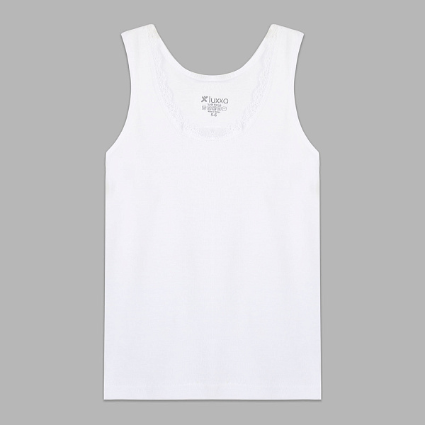 Майка для девочки белого цвета — удобная и практичная, она станет незаменимой вещью в гардеробе маленькой модницы. Изделие отличается простым классическим дизайном с аккуратной отделкой кружевом у горловины, добавляющей нежности и изящества. Мягкая и эластичная ткань обеспечивает комфорт в течение всего дня и не сковывает движений.