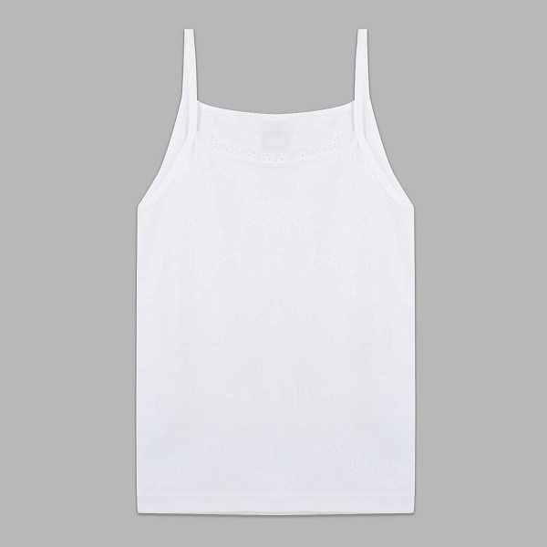 Майка для девочки белого цвета — универсальный и необходимый элемент детского гардероба, который объединяет в себе простоту, комфорт и практичность. Чистый белый оттенок легко сочетается с любыми нарядами, что делает майку удобной базовой вещью для повседневного использования. Ткань изделия мягкая и приятная на ощупь, обладает плотной текстурой, обеспечивающей долговечность и комфорт даже при активном использовании.