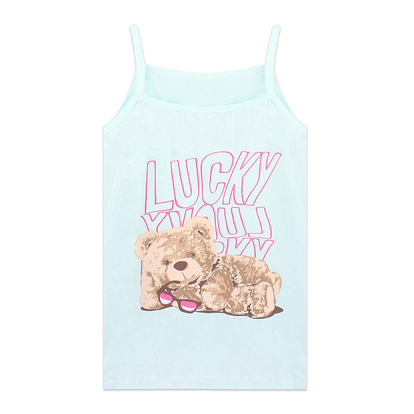 Майка LUXXA с изображением медвежонка и надписью Lucky голубая