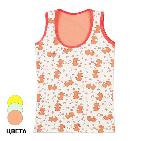 Яркий цвет и стильный дизайн делают эту майку привлекательной для маленьких принцесс. Передняя часть украшена милыми изображениями кошек, а цветной кант в тон изделию добавляет игривости.