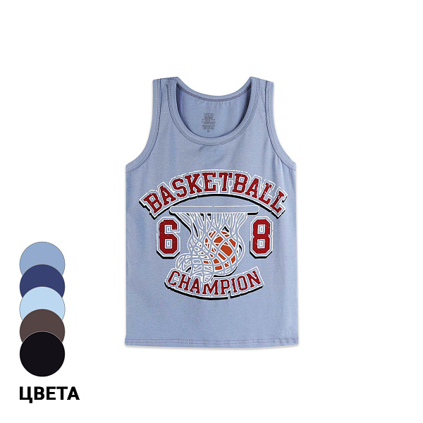 Хлопковые майки для мальчиков – это идеальная одежда для занятий спортом. В комплект входят три кофты черного, голубого и коричневого цветов. Каждая изготовлена в стиле формы профессиональных баскетболистов. Спереди напечатан яркий рисунок с надписью, привлекающий к себе внимание. Края маек аккуратно обработаны. У коричневой модели они выполнены в контрастном оранжевом цвете.